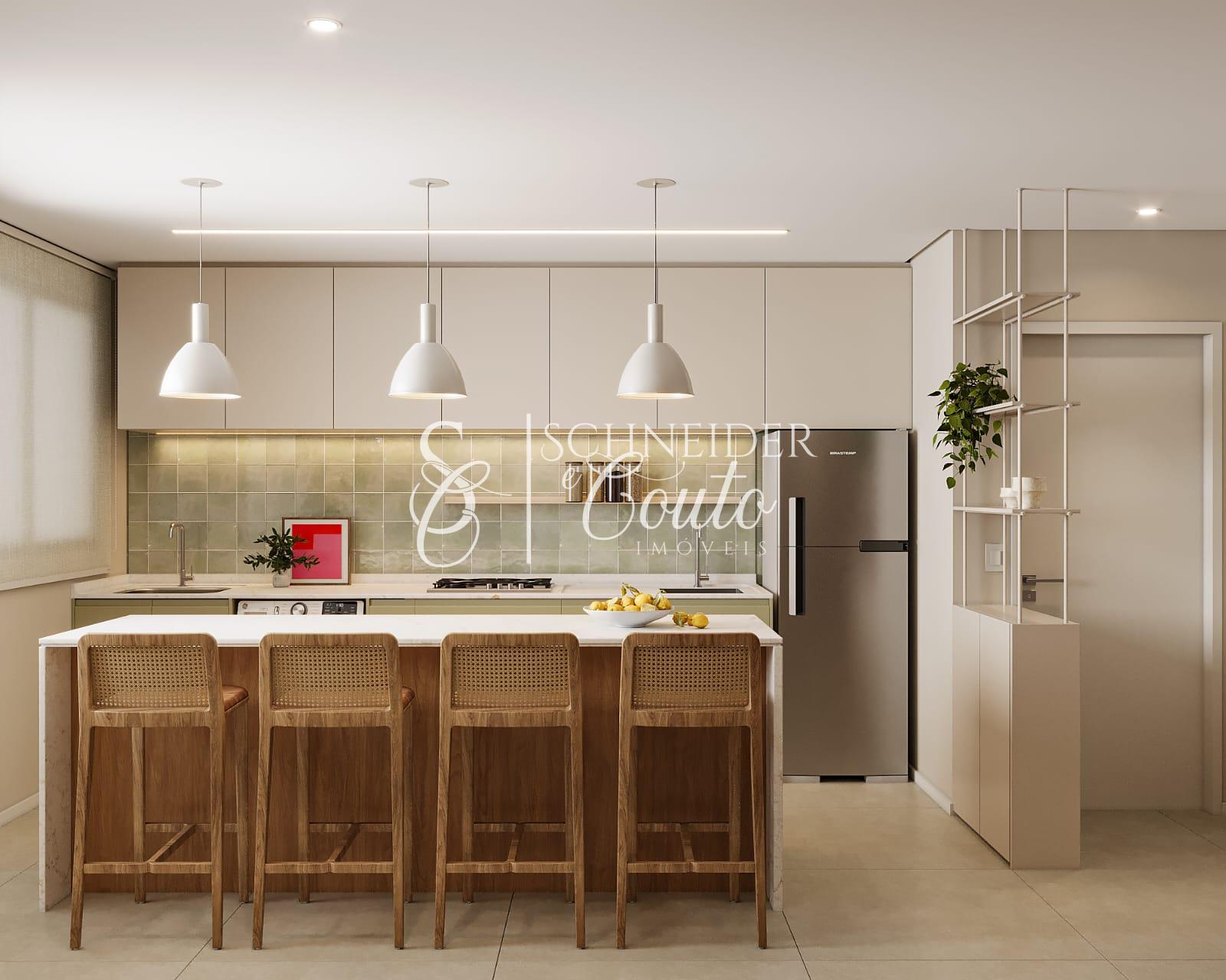 Cozinha com área gourmet integrada;
