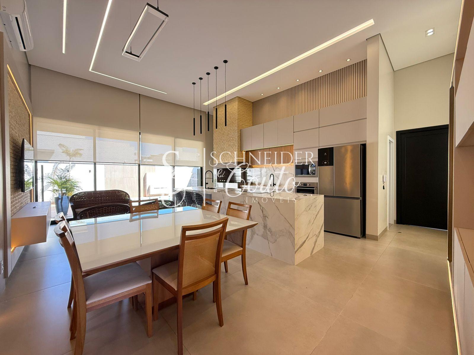 - Sala de jantar , sala de estar em conceito aberto com integração a piscina aquecida