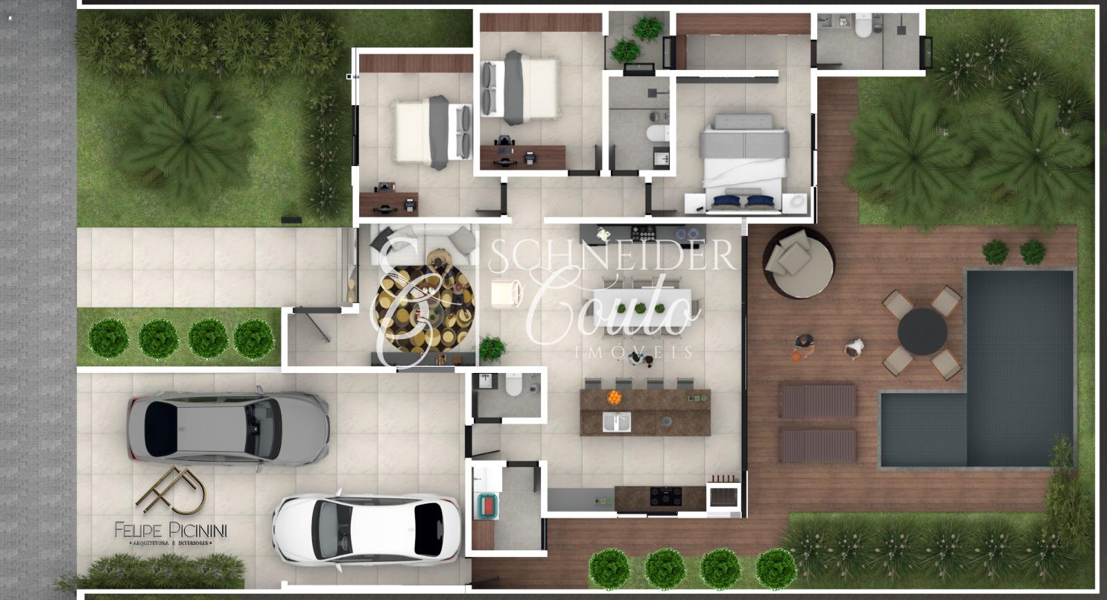 Suíte com closet + 02 Quartos;