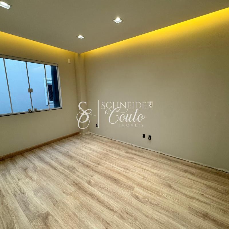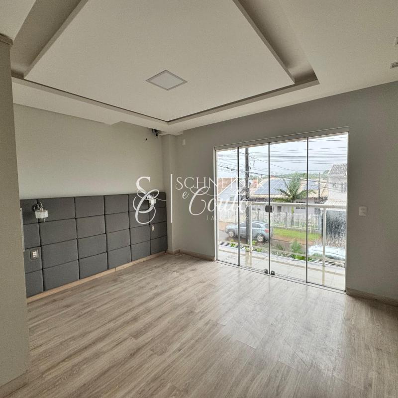 Andar superior: 1 suíte com sacada, 2 quartos e 1 banheiro social.