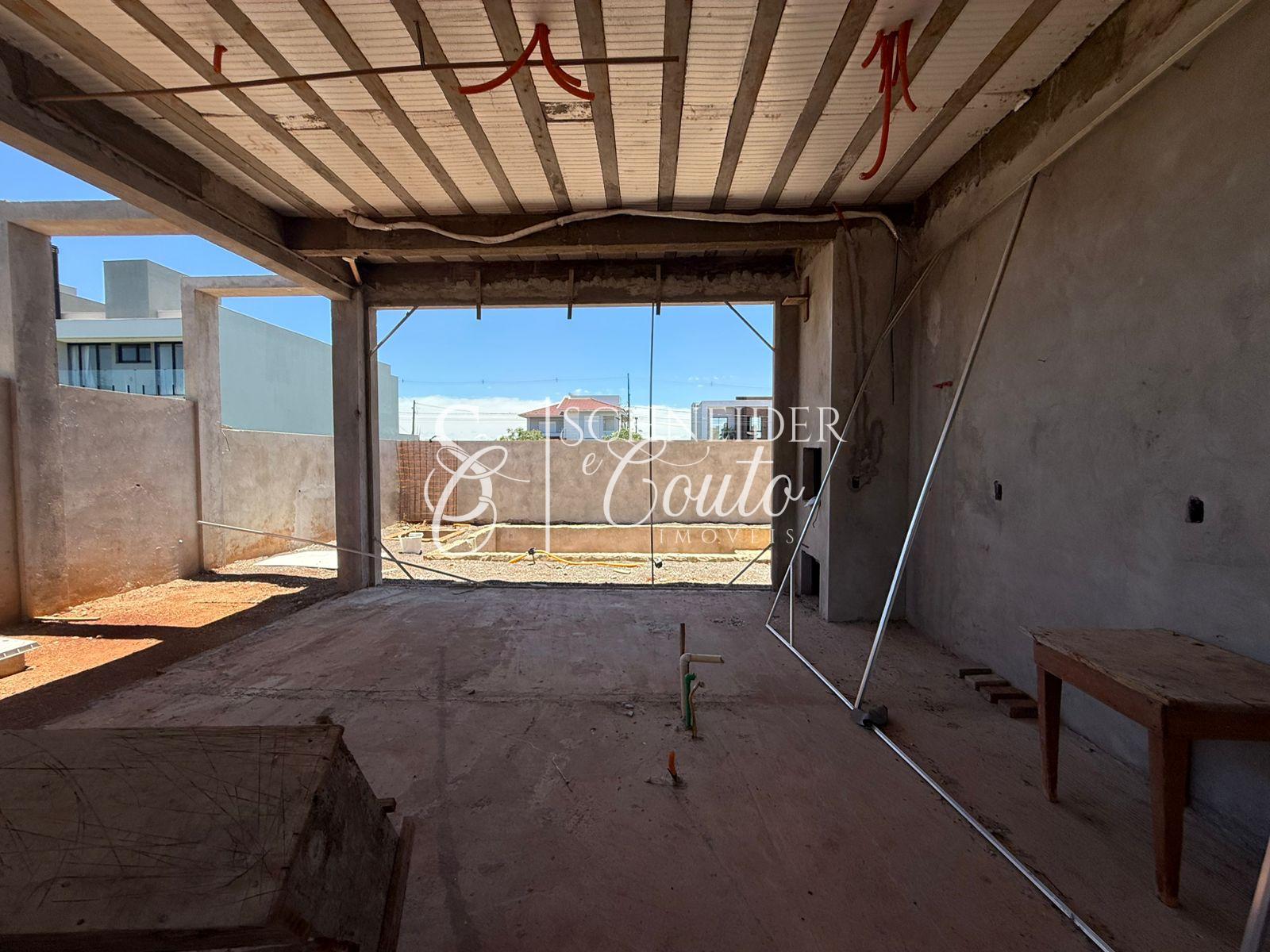 Composição de cômodos: Hall de entrada; Sala de estar; Cozinha integrada com Área Gourmet ; Lavabo; Área de serviço; Garagem paralela; 03 Suites; Piscina; Passagem lateral.